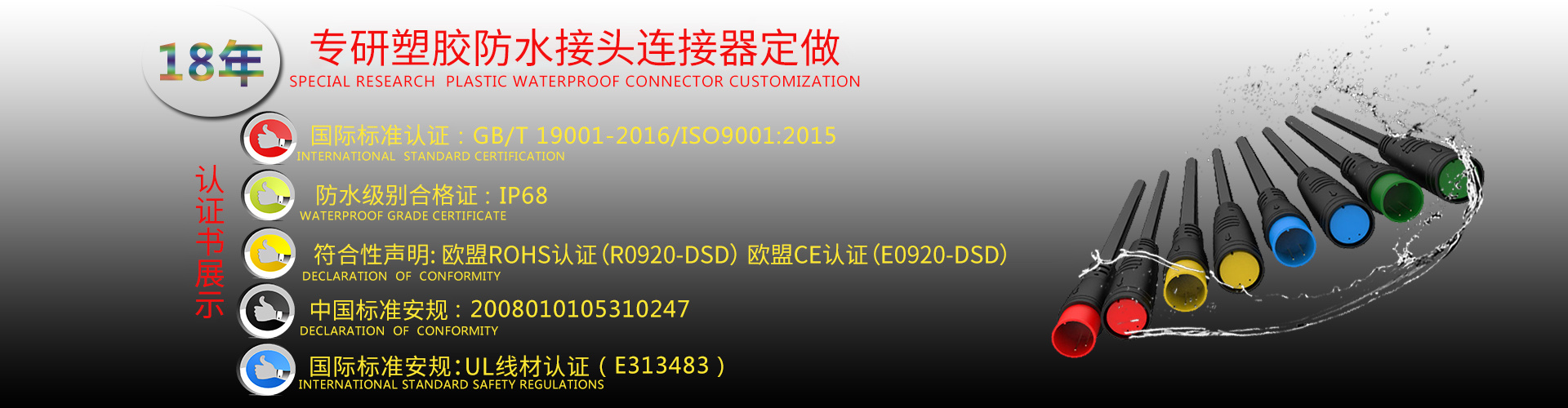 成立于2002年,坐落于設(shè)計之都中國廣東省深圳市。公司致力于LED防水連接器、衛(wèi)浴防水連接器、燈具防水連接器、太陽能防水連接器、地暖防水線、路燈防水線、電動車防水線、防水連接線材、工業(yè)防水插頭等各類連接線開發(fā)、設(shè)計、生產(chǎn)、銷售的專業(yè)廠家,產(chǎn)品廣泛應(yīng)用于工業(yè)、安防、電腦、通訊、家電、機(jī)電、汽車、LED等各種電子產(chǎn)品中,主要包括:生產(chǎn)及加工2.54、2.0 、2510、3.96、5.08、SAN/SCN、XH 、PH 等各系列連接線,幾百多種規(guī)格的電子接插線、LED、防水線,并可按客戶要求開發(fā)、設(shè)計、制造。